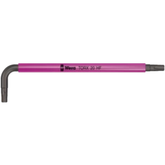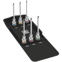 High quality L-keys for recessed TORX® screws. Comes With holding function (HF) on the long arm to securely hold the screw on the tool. The BlackLaser surface treatment provides outstanding corrosion protection and a long service life. Take it easy Tool Finder with colour coding according to size. Available in a practical clip fastener, whose wear-free material provides secure storage for the L-keys and enables simple removal.