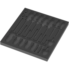 Durable foam insert; two-coloured for quick identification of missing parts; suitable for the Tool Rebel roller cabinet, equipped with 16 Wera Kraftform screwdrivers (workshop, VDE, chiseldriver, Micro) as well as 2 screw grippers.
