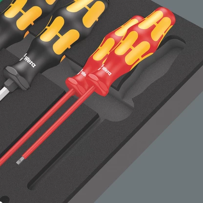 • 2 Kraftform Plus VDE screwdrivers with insulated blades for safe working up to 1,000 volt