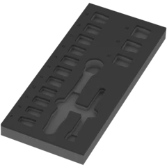 Durable foam insert; two-coloured for quick identification of missing parts; suitable for the Tool Rebel roller cabinet. Equipped with one Zyklop Comfort 8010 B ratchet, 3/8", 14 Impaktor 8790 B sockets 3/8", one Zyklop extension 8798 B, 3/8".