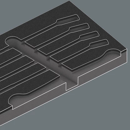 The tools sit securely in the foam thanks to precise contour cutouts, but are easy to remove. The carefully designed arrangement of the tools ensures space-saving storage and quick access to each tool.
