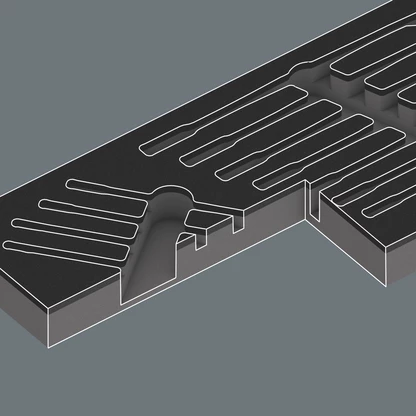 The tools sit securely in the foam thanks to precise contour cutouts, but are easy to remove. The carefully designed arrangement of the tools ensures space-saving storage and quick access to each tool.