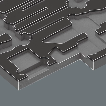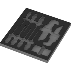 The tools sit securely in the foam thanks to precise contour cutouts, but are easy to remove. The carefully designed arrangement of the tools ensures space-saving storage and quick access to each tool.