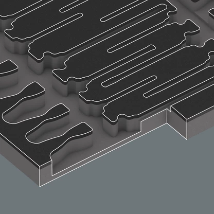 The tools sit securely in the foam thanks to precise contour cutouts, but are easy to remove. The carefully designed arrangement of the tools ensures space-saving storage and quick access to each tool.