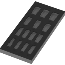 One durable foam insert, without tools; two-coloured for quick identification of missing parts; width x height x depth: 172 x 30 x 392 mm; spare foam insert for Wera item 9728; suitable for the Tool Rebel roller cabinets.