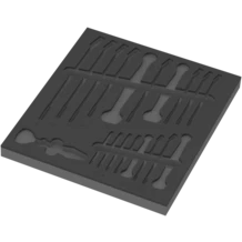 One durable foam insert, without tools; two-coloured for quick identification of missing parts; width x height x depth: 344 x 30 x 392 mm; spare foam insert for Wera item 9731; suitable for the Tool Rebel roller cabinet.