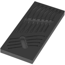 One durable foam insert, without tools; two-coloured for quick identification of missing parts; width x height x depth: 172 x 30 x 392 mm; spare foam insert for Wera item 9733; suitable for the Tool Rebel roller cabinet.