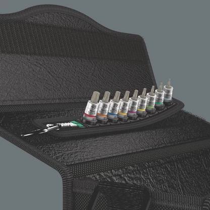 • 9-piece bit-socket set on a robust textile belt, ¼"