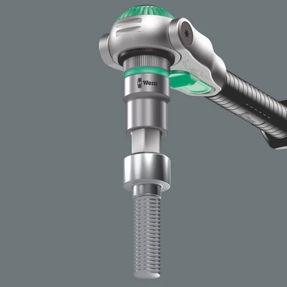 The clamping of the screw is achieved by a flexible locking ball. The holding function is especially helpful in confined, hard-to-reach spaces, where there is no room for a second hand to secure the screw.