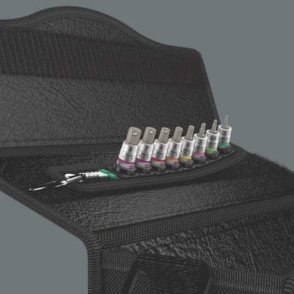 • 9-piece bit-socket set on a robust textile belt, ¼"