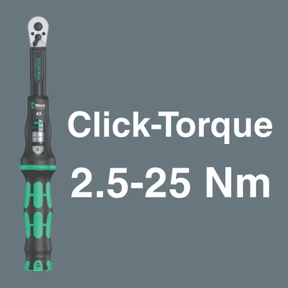 - Safely quantified force: when the set value is reached, the torque wrench triggers audibly and noticeably (click 2)
