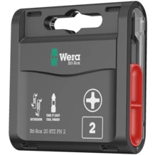 BiTorsion Bits for Phillips screws in a practical Bit-Box. Come with a torsion zone where kinetic energy is diverted to when peak loads prevail: this significantly prolongs the product service life; with Take it easy tool finder: colour coding according to profile and size stamp; tough viscous design for universal use; 1/4" hex, suitable for holders as per DIN ISO 1173-D 6.3.