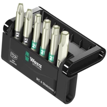 Upright positionable Bit-Check with high quality stainless bits. Wera stainless are made out of stainless steel which prevents the formation of unsightly extraneous rust. ¼" hexagon, suitable for holders as per DIN ISO-F 6.3.