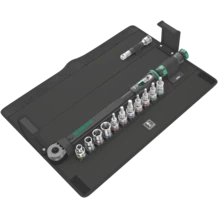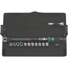 Click torque wrench set in the unmistakable Wera design. Very robust design with high accuracy as per DIN EN ISO 6789-1: 2017-07. Easy setting and saving of the default values. The audible and tactile snapping on reaching the scale values also facilitates the safe setting of the desired torque values. The robust release mechanism guarantees a clearly audible and tactile trigger signal when the set torque is reached. For clockwise torque-control and with reversible 45-tooth ratchet. Torque wrenches and torque-compatible accessories are packed in an extremely space-saving, robust, surface-friendly textile box. Contains: Click Torque C 3, 1/2", 40 - 200 Nm, 4 sockets with 1/2" drive, 7 hex plus hexagon socket and TORX® bit sockets plus extension.