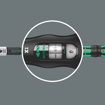 Click-Torque wrench in the unmistakable, robust Wera design with high accuracy as per DIN EN ISO 6789-1: 2017-07. Easy setting and saving of the default value. The audible and tactile clicks on reaching the scale values also facilitate the safe setting of the desired torque value. The robust release mechanism guarantees a clearly audible and tactile release signal when the set torque is reached. For right-hand and left-hand use and with 9x12mm insert square for the insertion of insert tools.