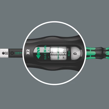 Easy setting and saving of the desired torque value; easy to read on main and fine scales.