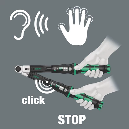 On reaching the desired torque value, an audible and tactile mechanism is triggered.