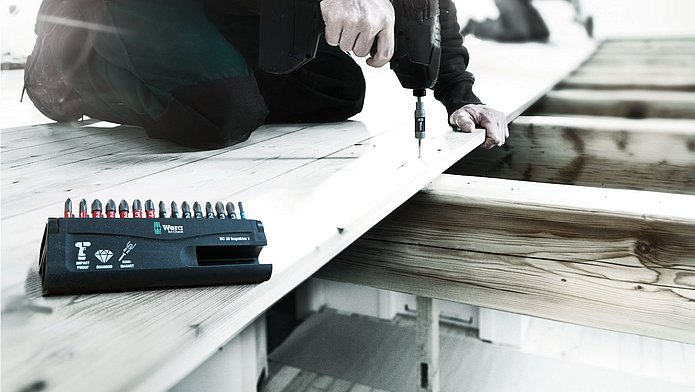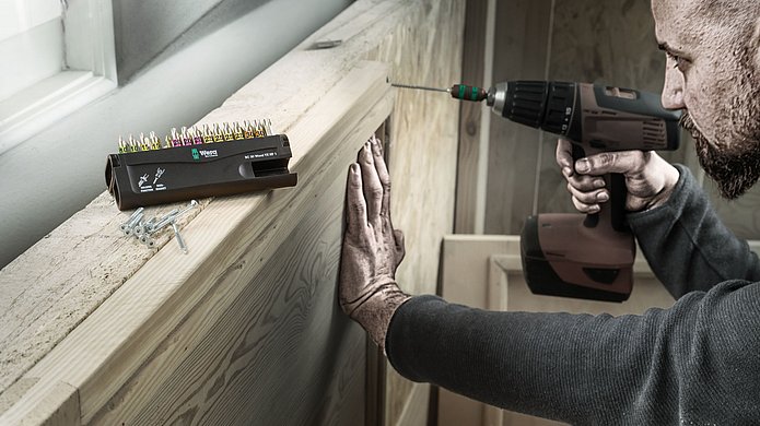 We have had bit ranges in our programme for many years now. In 2016, we put a question mark against everything and came up with a game changer. We wanted bit ranges with bits whose profiles and sizes could be more easily recognised. We wanted bit ranges that were as compact as possible and which were Wera-like at a first glance. We wanted bit ranges with bits that could be removed and reinserted more easily. We wanted bit ranges with as little weight as possible. The new multi-component Bit-Checks satisfy these requirements; the soft material in the lower section of the Bit-Checks ensures that the bits are firmly held yet easy to remove.