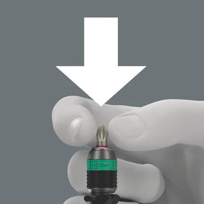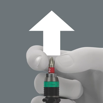 Simply push the sleeve forward to change the bit. The spring mechanism lifts the bit off the magnet and unlocks the tool. The bit can be easily removed. The rapid-out function makes it easy to remove even the smallest bits without extra tools.