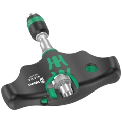 - T-handle bitholding screwdriver with integrated fine-toothed ratchet for fast and safe working