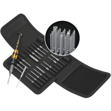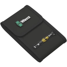 Kraftform Kompakt Micro set for precision mechanical work. Suitable for the take-up of bits with 4 mm halfmoon drive (Wera series 9) and bits with 4 mm HIOS drive (Wera series 21). Electrical surface resistance of ≤ 109 Ohm for secure protection against electrostatic charge. Manufactured in accordance with DIN EN 61340-5-1. Compact handle/interchangeable blade system for fast blade change. Kaftform Micro handle with twist cap and free-turning zone for rapid twisting, making any time-consuming repositioning of the fingers unnecessary. Power zone with integrated soft zones for the transfer of higher tightening and loosening torque. Precision zone directly above the blade for the right angle for adjustment work. Bits for manual as well as power tool operations. Rapid fixing of the bit: just push the bit into the insert for automatic locking and a secure fit. To change the bit, simply push the sleeve forward and remove. Free-turning sleeve for simple guidance of the tool during the screwdriving process.