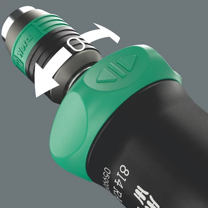 Intuitive switching of the ratchet mechanism. Turn the switch clockwise for clockwise screwdriving; turn it counterclockwise for counterclockwise screwdriving. Use position 0 to deactivate the ratchet mechanism for precise working.