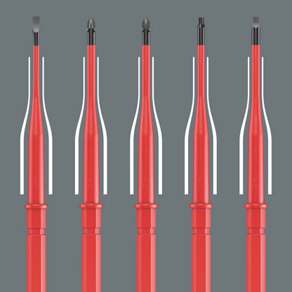 Reduced blade diameter with integrated protective insulation, allows sunken screws and spring elements to be accessed and actuated, individually tested as per IEC 60900.