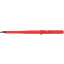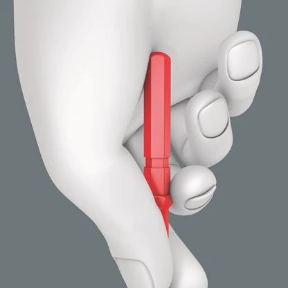 VDE blade for Kraftform Kompakt handle/interchangeable blade system. Lightning-fast blade changes without special tools. Individually tested at 10,000 V for safe working at the approved voltage of 1,000 V. The Wera Black Point tip offers fitting accuracy and optimised corrosion protection. With Take it easy Tool finder: Colour coding by profile and laser-engraved size indication. The hexagon anti-roll protection avoids blades from rolling away unintentionally.