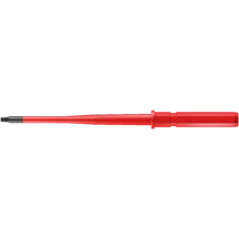 Interchangeable blade with reduced shaft diameter and integrated insulation protection; this means that low-lying screws and spring elements can be accessed and actuated. Individual testing at 10,000 volts so as to ensure safe working at the permitted voltage of 1,000 volts.