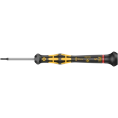 Electrostatically secured Wera Micro screwdriver 25-piece set. The included screw profiles are especially suitable for the use on mobile phones and tablets. Safe protection against electrostatic energy and associated damage. By supporting the hand on the rotating cap, and by the fast rotating zone below the rotating cap, lightning fast turning is possible. Time-consuming hand switching is eliminated. The power zone with integrated soft zones ensures the transmission of high tightening and loosening moments. Precision zone for correct rotation angles whilst adjusting. The Black Point tip provides fitting accuracy and optimum corrosion protection. Take it easy tool finder with size stamping and colour coding by profile to find the required tool quickly and easily. Storage and transport in a robust textile pouch, so the tool is well protected and always close at hand.