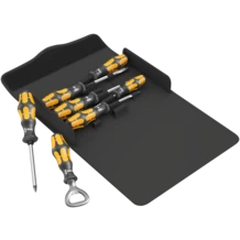 Design: 7-piece set in compact, textile box with Wera2go compatibility. With iconic Wera bottle opener.