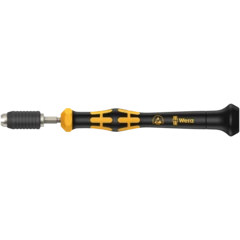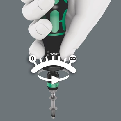 Wera torque screwdriver. With a customised factory pre-set torque value. For all applications, where the same constant torque and repeat accuracy are required. The torque can be changed with an extra tool within the measuring range (re-calibration kit can be ordered with the code number 05137001001). Afterwards you can check the set value using an off-the-shelf torque tester. Unlimited loosening torque for slackening stuck screws. Rapidaptor quick-release technology for rapid bit changes. Suitable for bits with a 1/4" external hexagon drive as per DIN ISO 1173-C 6.3 and E 6.3 (ISO 1173). Multi-component Kraftform handle with hard and soft zones for high working speeds, whilst being easy on the hand.