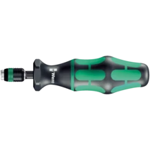 Wera torque screwdriver. With a customised factory pre-set torque value. For all applications, where the same constant torque and repeat accuracy are required. The torque can be changed with an extra tool within the measuring range (re-calibration kit can be ordered with the code number 05137001001). Afterwards you can check the set value using an off-the-shelf torque tester. Unlimited loosening torque for slackening stuck screws. Rapidaptor quick-release technology for rapid bit changes. Suitable for bits with a 1/4" external hexagon drive as per DIN ISO 1173-C 6.3 and E 6.3 (ISO 1173). Multi-component Kraftform handle with hard and soft zones for high working speeds, whilst being easy on the hand.