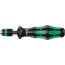 Wera torque screwdriver. With a customised factory pre-set torque value. For all applications, where the same constant torque and repeat accuracy are required. The torque can be changed with an extra tool within the measuring range (re-calibration kit can be ordered with the code number 05137003001). Afterwards you can check the set value using an off-the-shelf torque tester. Unlimited loosening torque for slackening stuck screws. Rapidaptor quick-release technology for rapid bit changes. Suitable for bits with a 1/4" external hexagon drive as per DIN ISO 1173-C 6.3 and E 6.3 (ISO 1173). Multi-component Kraftform handle with hard and soft zones for high working speeds, whilst being easy on the hand.