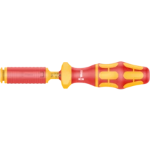 Torque VDE holder for safe work up to 1,000 volts. Adjustable torque value from 0.3-1.2 Nm. Distinct audible and perceivable excess load signal when the pre-set torque value is reached. Unlimited manual loosening torque. For Kraftform Kompakt VDE blades: the handle/interchangeable blade system allows a rapid exchange of the blade and thereby diverse applications.