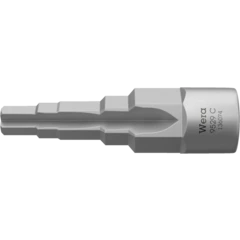 Manual and machine sockets (ISO 2725-part 3) for manual and machine use. With Take it easy Tool finder with colour coding by size - for quick and easy identification of the required tool. Slip-proof for easy grip even with oily hands. With ball stop groove. For external hexagon screws and bolts. Made of matte-chromed chrome-vanadium.